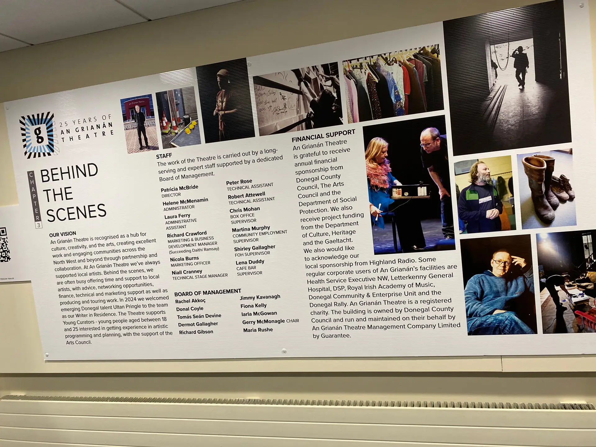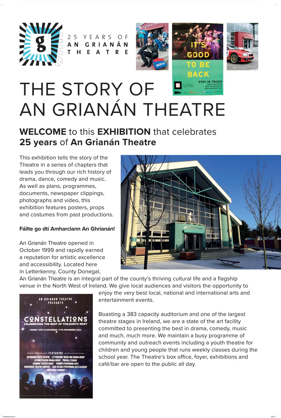 I was also very honoured to be involved in the exhibition to celebrate the 25th anniversary of the An Grianán theatre. It was to be a major exhibition, being insitu at the Theatre for a full 12 months.