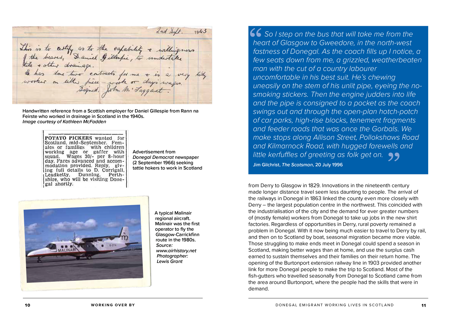 I was very honoured to be involved in the exhibition to highlight and document the working lives of people from Donegal who emigrated to Scotland between 1940 and 1990 in search of work.