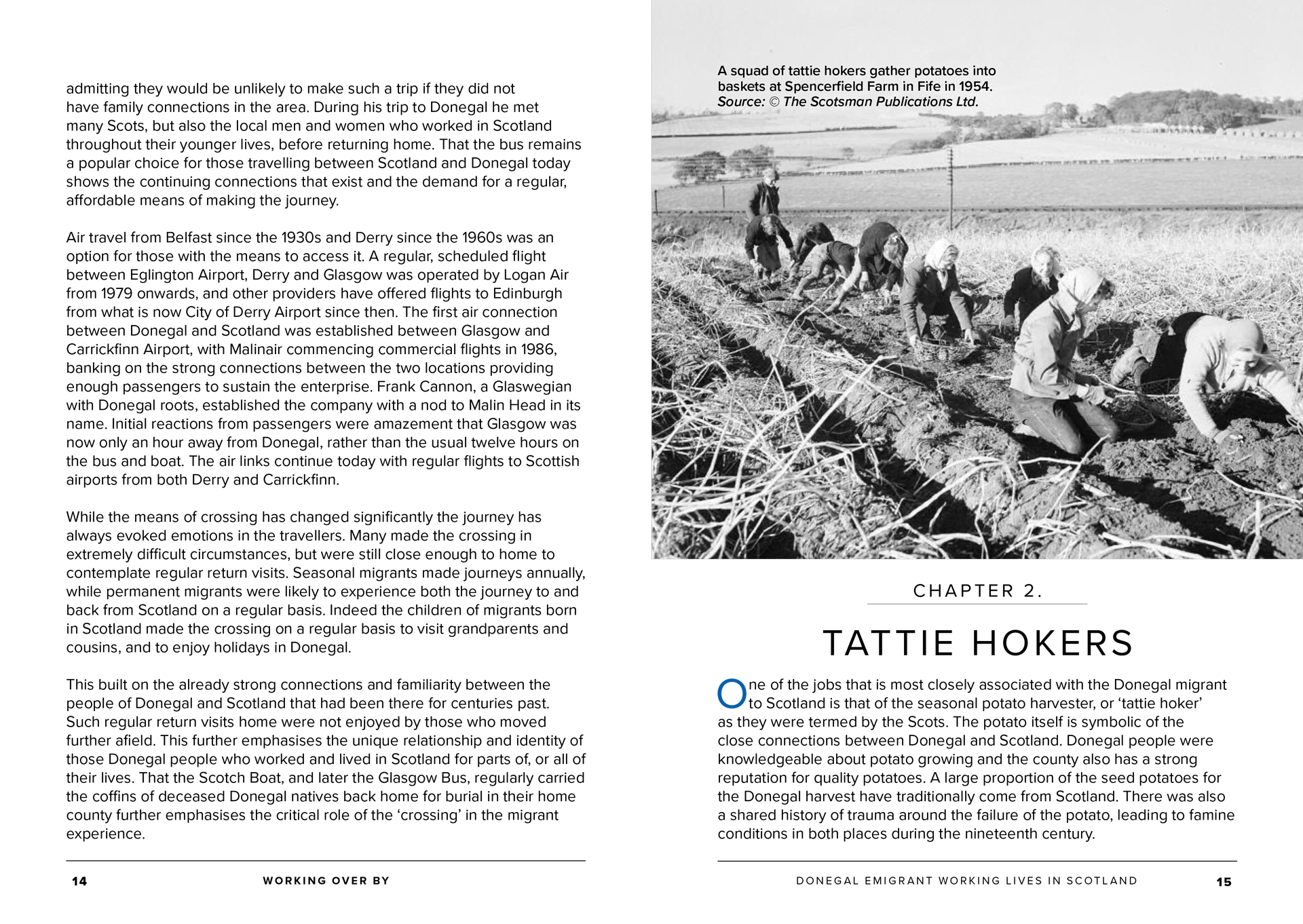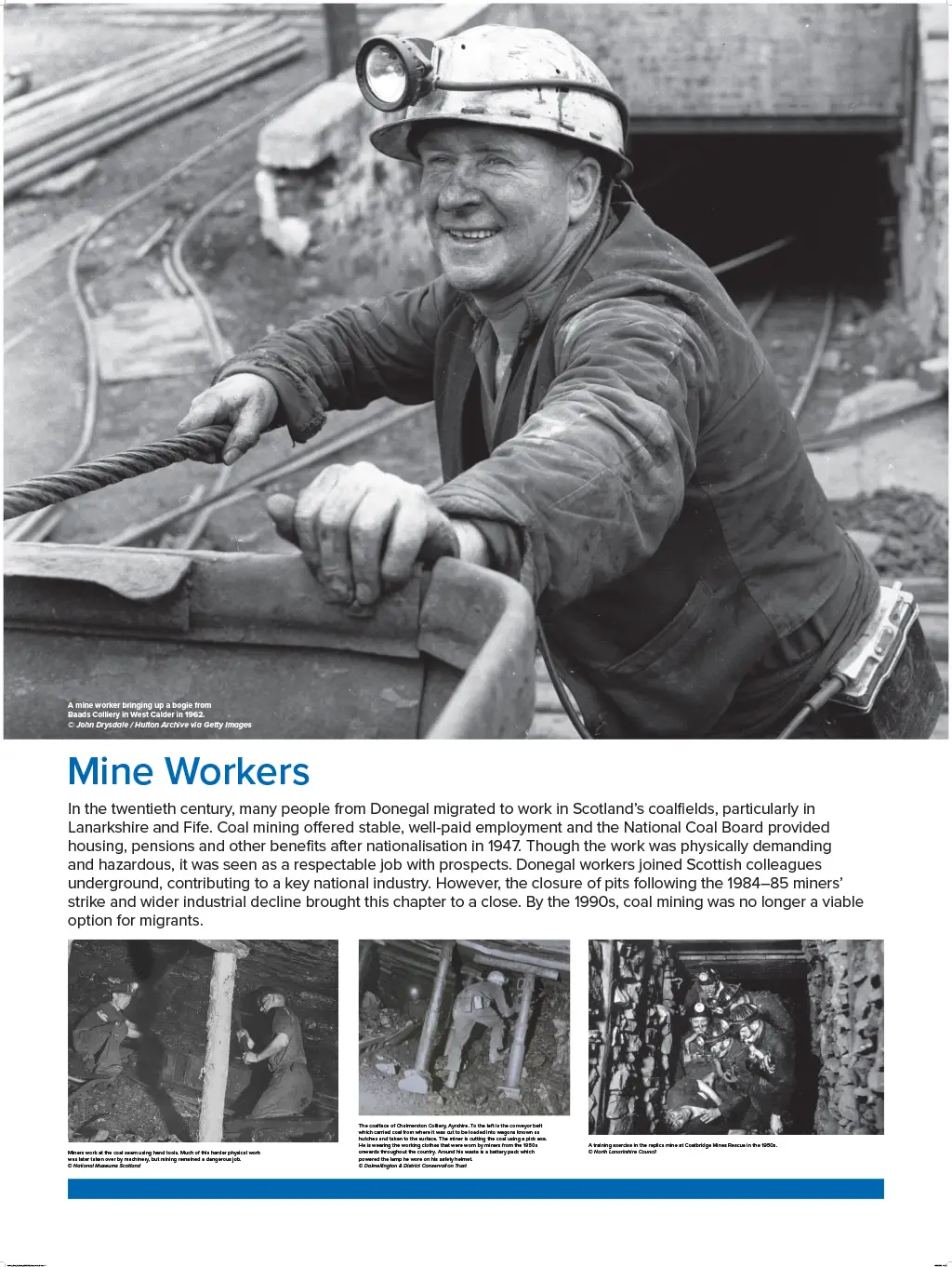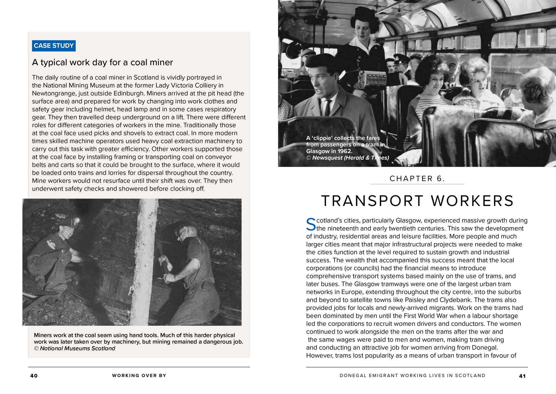 As part of the implementation of the County Donegal Heritage Plan, the Culture Division of Donegal County Council in partnership with the Mellon Centre for Migration Studies sought to document the work experiences of those Donegal people who worked on farms, building sites and hydro-electric, those people who became ‘tunnel tigers’, ‘McAlpine’s fusiliers’ and ‘tattie hokers’, those people who became domestic workers, worked ‘on the buses’ or in chocolate/biscuit factories, those people who undertook even more ‘ordinary’ and less celebrated work.